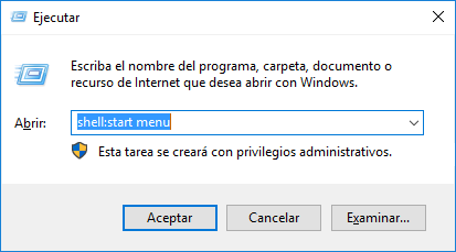 Mediante el comando Ejecutar, ejecutamos el siguiente comando: shell:start menu