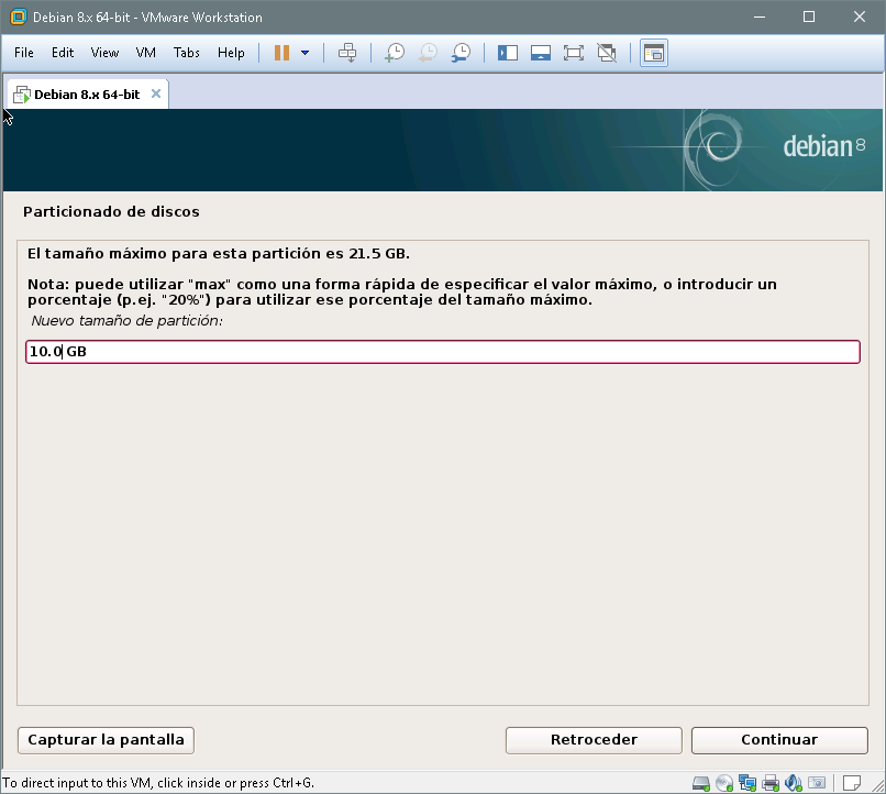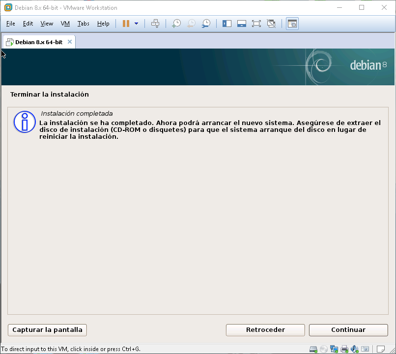 Ya solo nos queda instalar las VMware Tools para mejorar el rendimiento y la interoperatividad entre el hipervisor (VMware Workstation Pro) y el sistema operativo invitado (Debian 8 jessie).Pincha aquí para ver el artículo Instalación de VMware Tools en Linux.