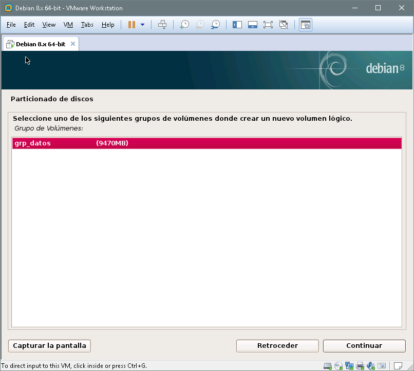 Figura 43: Seleccionamos el grupo donde crearemos el volumen lógico. En nuestro caso, el único que hemos creado